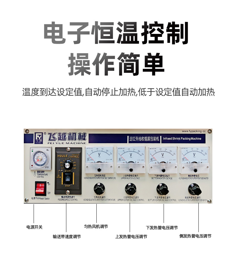 3、采用遠紅外線加熱管,將熱量直接傳送到收縮膜表面,收縮效率特佳