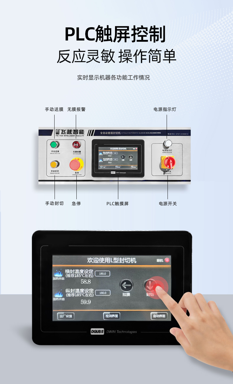5、產(chǎn)品誤切保護(hù),切刀碰到產(chǎn)品立即停止封切彈起,防止誤切,保護(hù)切刀、產(chǎn)品和人