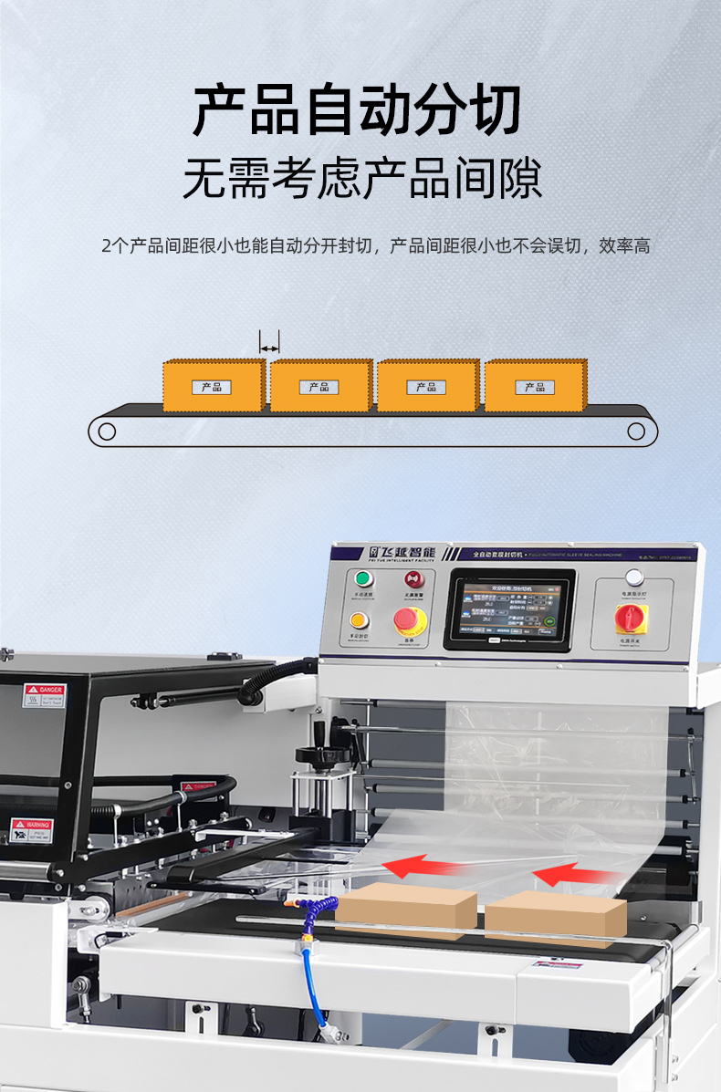 3、產(chǎn)品自動分切,2個產(chǎn)品間距很小也能自動分開封切,防止2個產(chǎn)品太近造成誤切,效率高