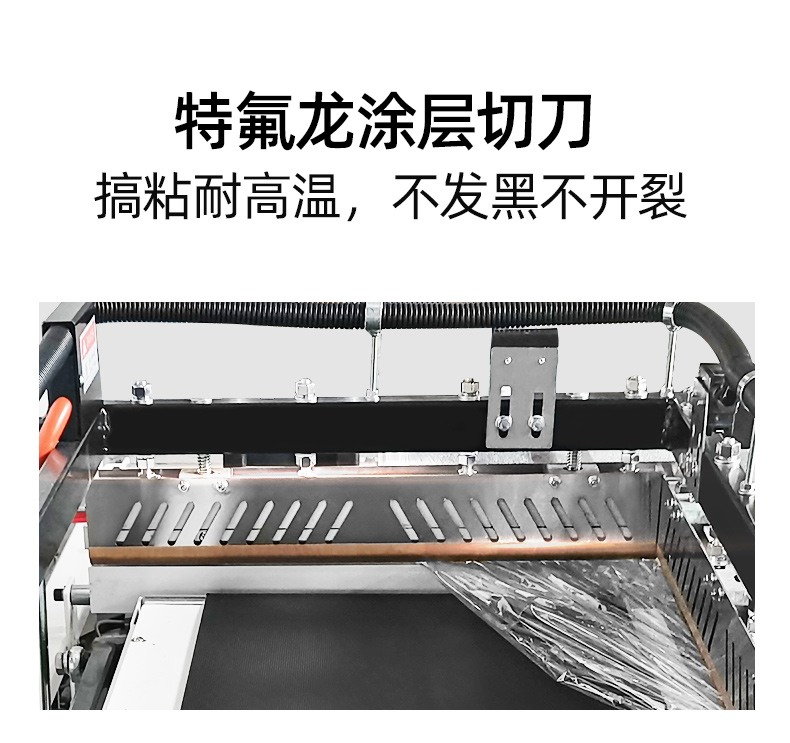 4、鋁合金封切刀,特氟龍涂層不粘膜,耐高溫不易變形,封口線牢固不開裂,封切不焦化冒煙