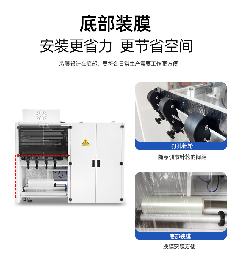 7、針輪位置可調(diào),根據(jù)不同產(chǎn)品和收縮效果,輕松調(diào)節(jié)針輪的位置調(diào)整孔位散氣