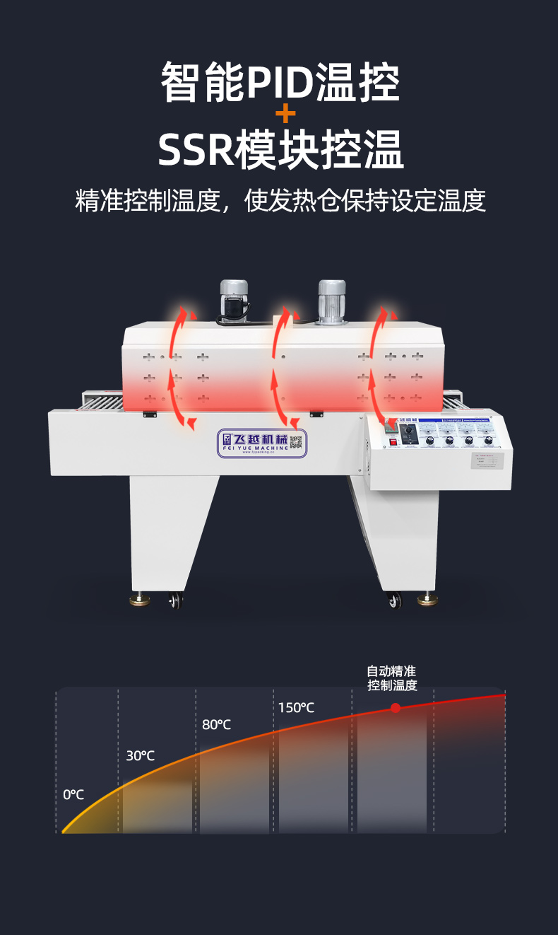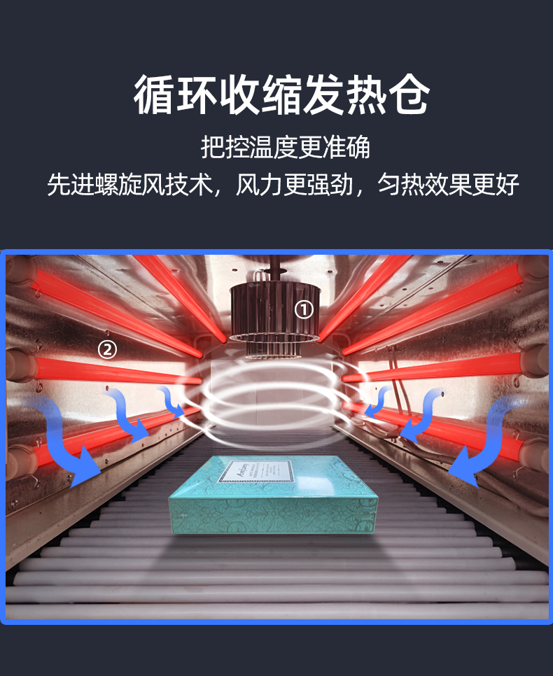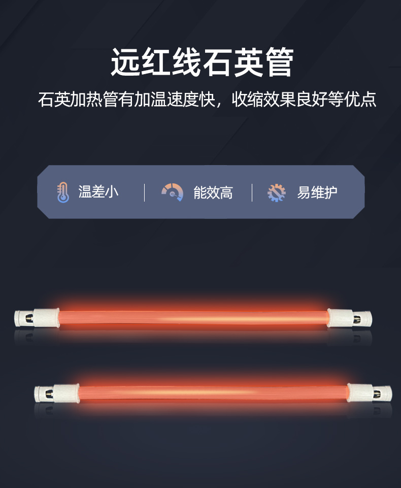 3、采用遠(yuǎn)紅外線加熱管,將熱量直接傳送到收縮膜表面,收縮效率特佳