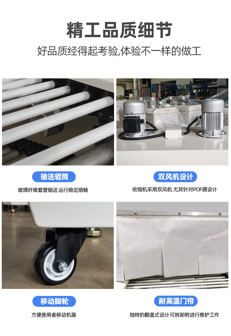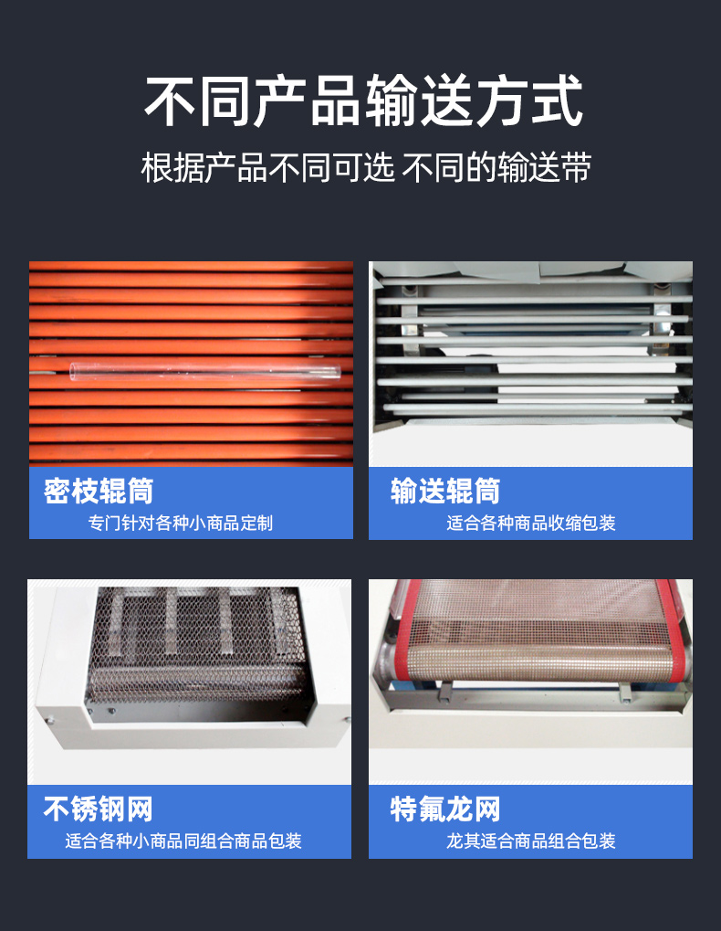 5、輸送輥筒隨著輸送帶運行而勻速滾動,解決底部難收縮的困擾