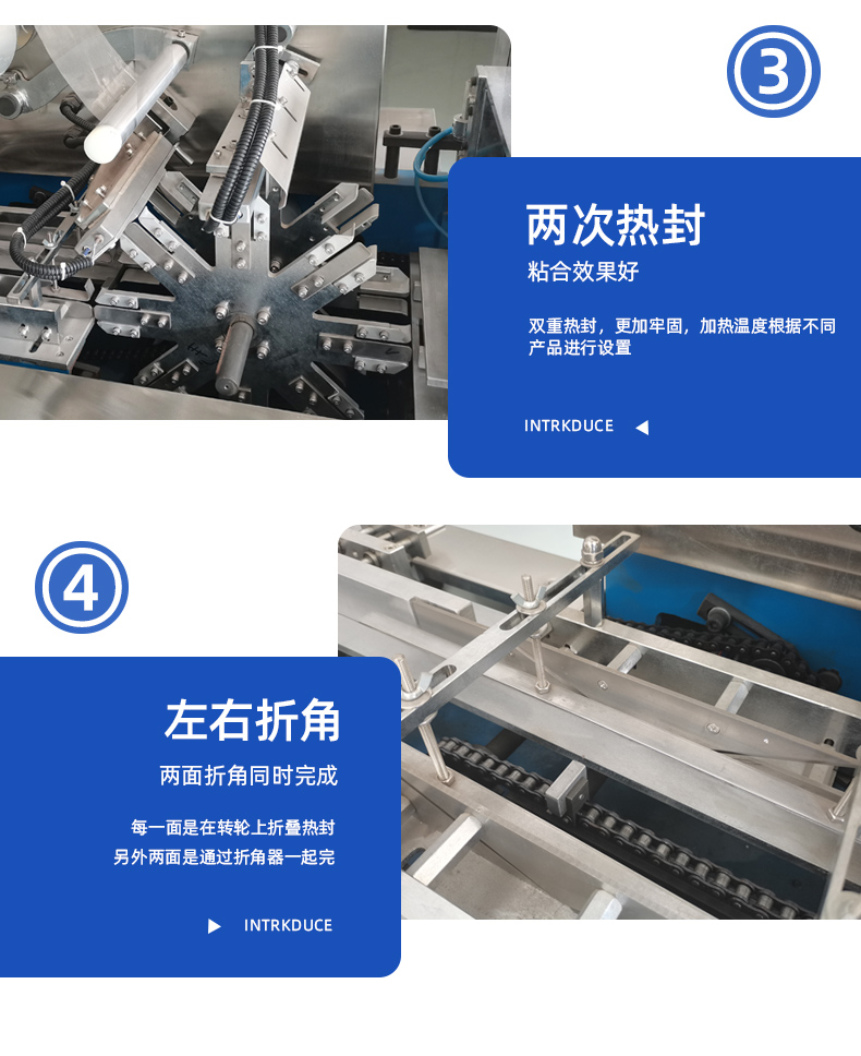 4、瞬間熱封,熱封工位不存料,近似冷包裝,對藥品類、熱敏產品近乎無影響