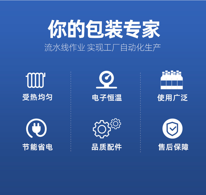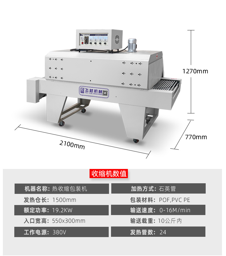 9、采用分體式結(jié)構(gòu),可根據(jù)產(chǎn)品大小及不同的包裝材料選配不同的熱收縮包裝機(jī);