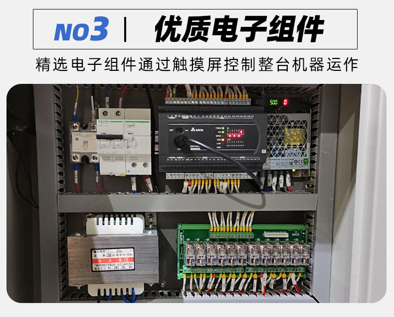 6、歐姆龍光電定位,穩(wěn)定性好,精度高響應(yīng)迅速,使物料就位準(zhǔn)確,并能區(qū)分物料就位與虛報(bào);
