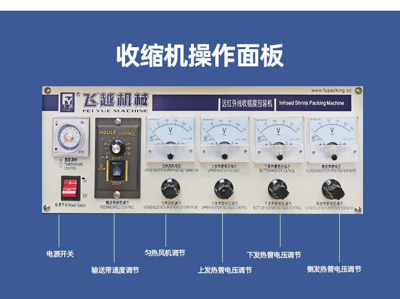 3、采用遠(yuǎn)紅外線加熱管,將熱量直接傳送到收縮膜表面,收縮效率特佳