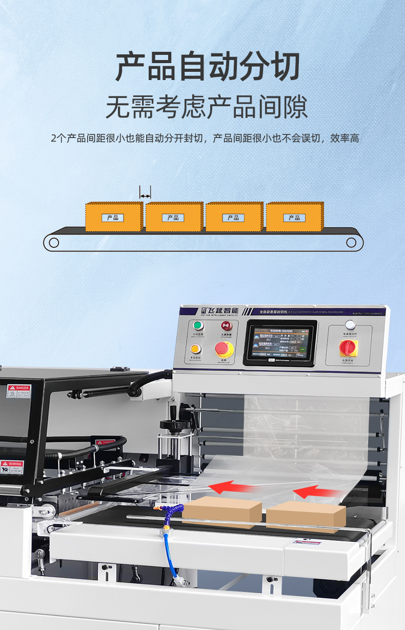 3、產(chǎn)品自動分切,2個產(chǎn)品間距很小也能自動分開封切,不會誤切,效率更高