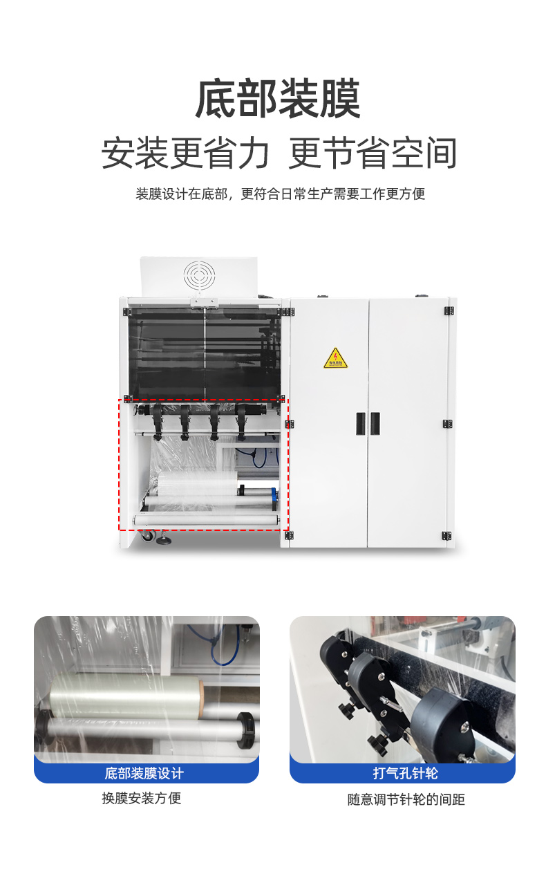 7、針輪位置可調(diào),根據(jù)不同產(chǎn)品和收縮效果,輕松調(diào)節(jié)針輪的位置調(diào)整孔位散氣