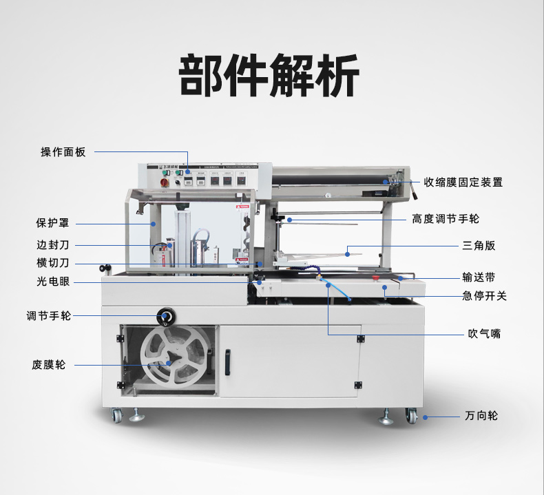 BF系列封切機(jī)屬于邊封機(jī),屬于封切機(jī)的一種,由電器、機(jī)械、機(jī)身三大部分組成,和L型封切機(jī)區(qū)相比,主要特點(diǎn)就是可以根據(jù)商品高度通過高度調(diào)節(jié)手柄單獨(dú)調(diào)節(jié)縱封和橫封的封切線使之位于商品的中線位置,從而使產(chǎn)品收縮良好。